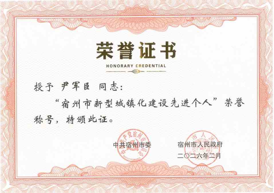 喜訊!宿州“新春第一會(huì)上”,我公司尹軍臣同志受到新型城鎮(zhèn)化建設(shè)先進(jìn)個(gè)人的表彰!